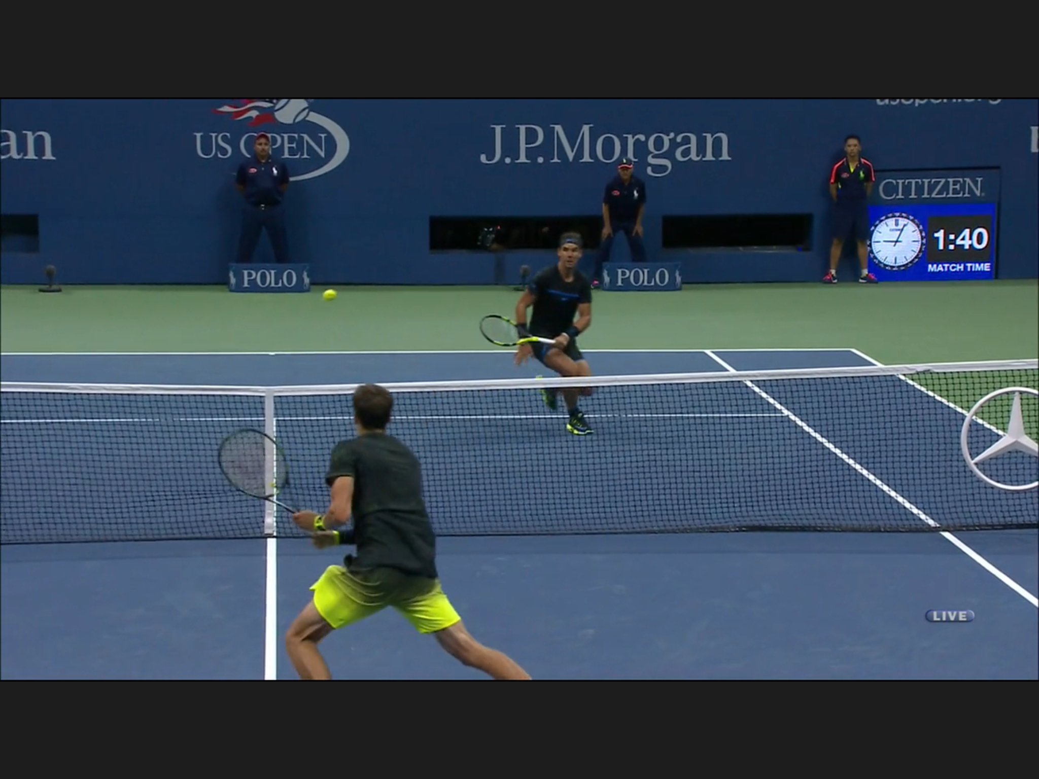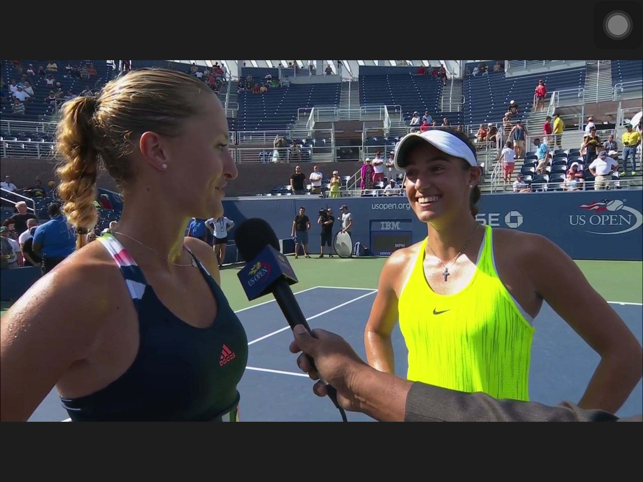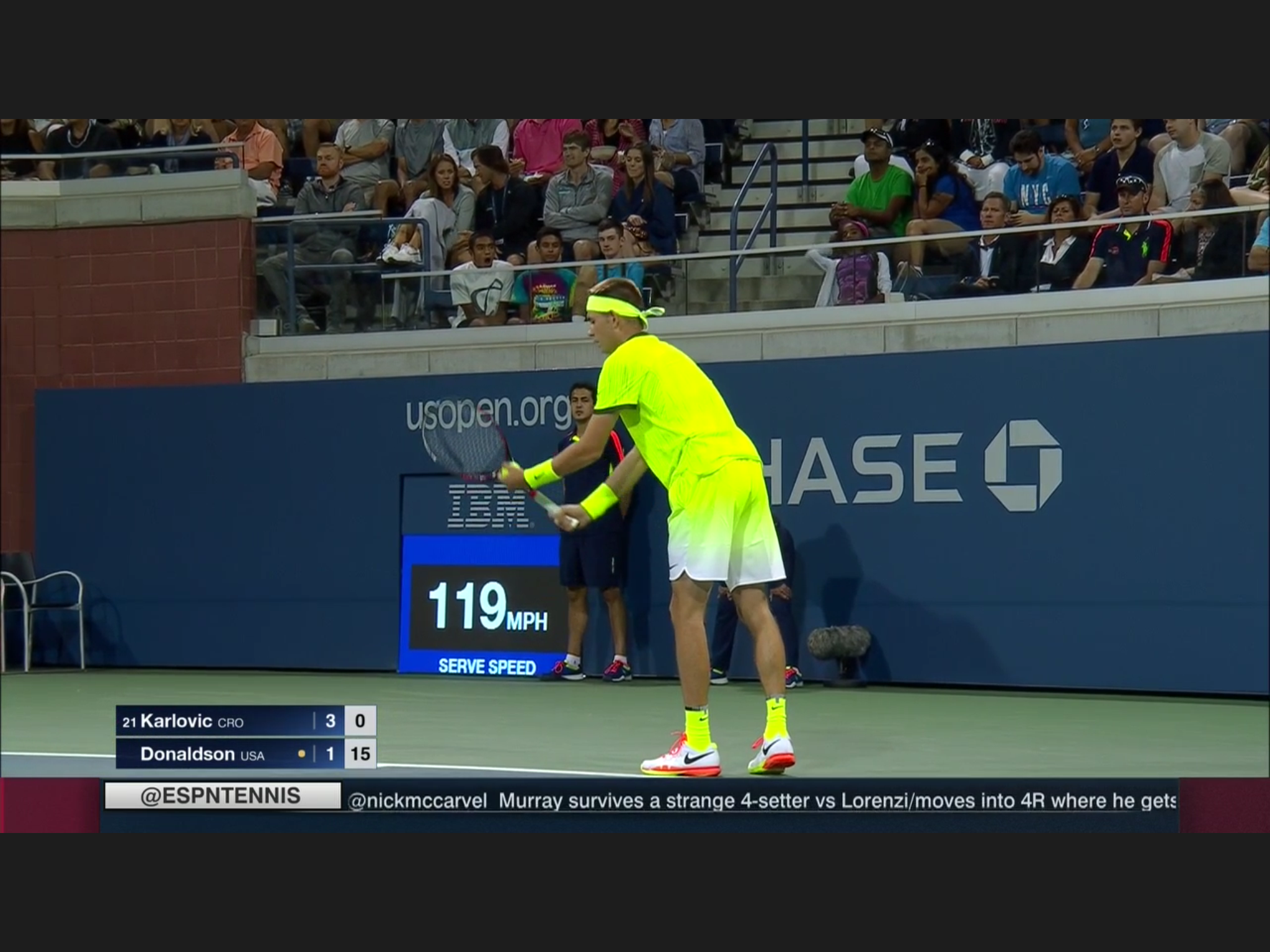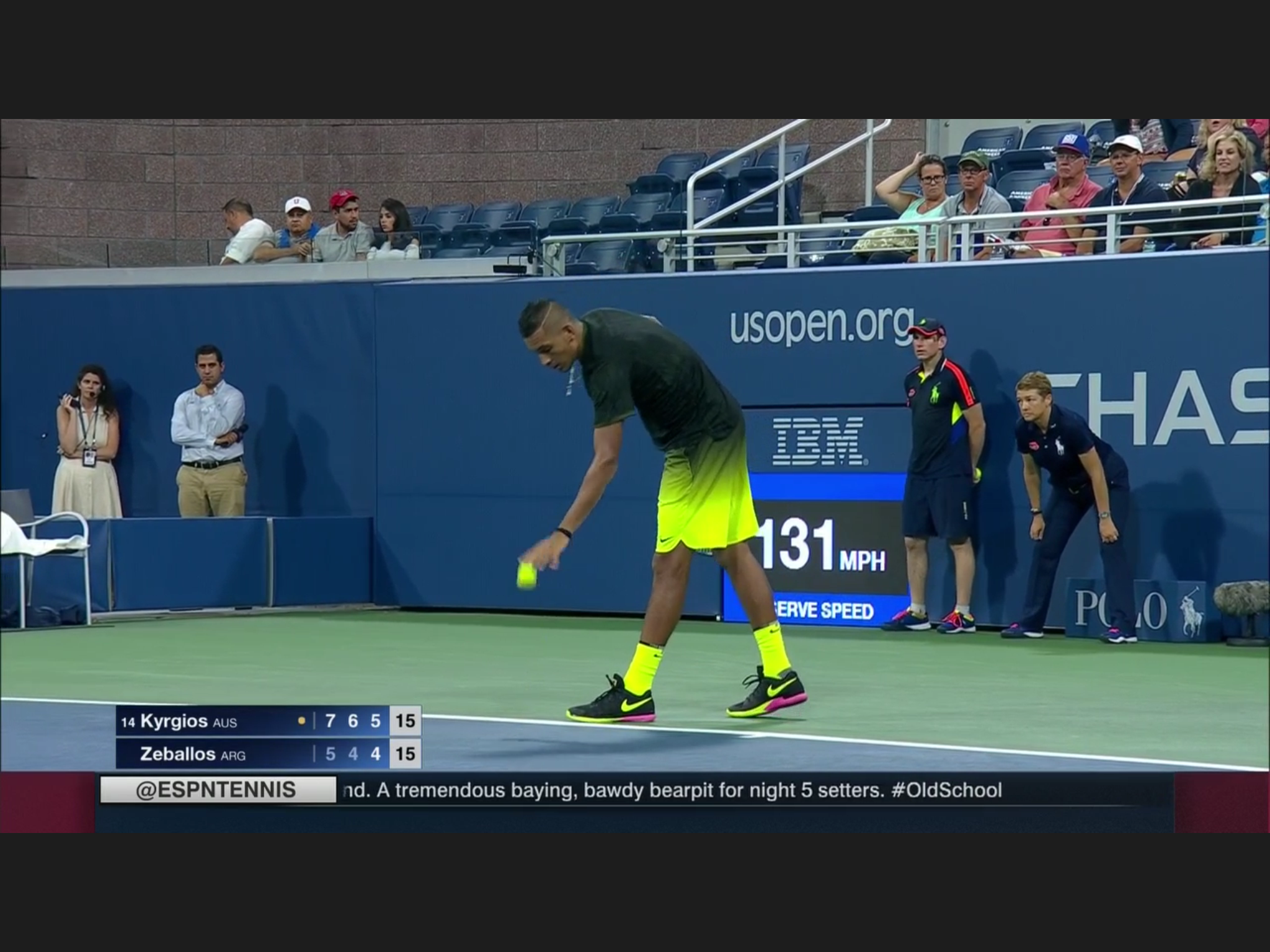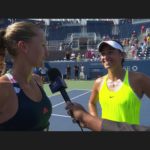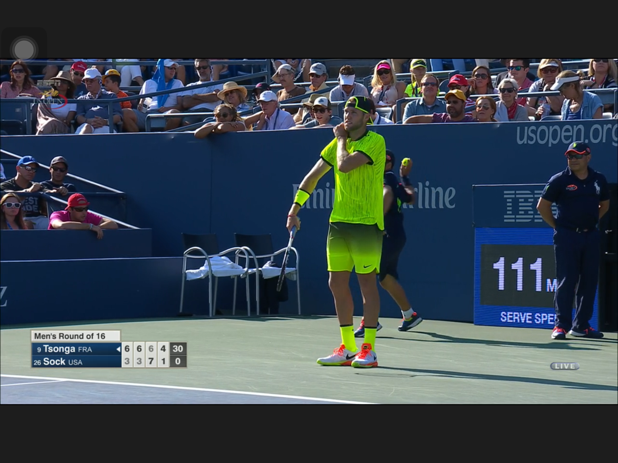 This has to be the most uniformed Open so far: every one is wearing the same neon/florescence color of yellow, men and women. At some singles matches the two players wearing identical outfit. Zhang Shuai is very tanned, still playing – she’s considering retirement before.