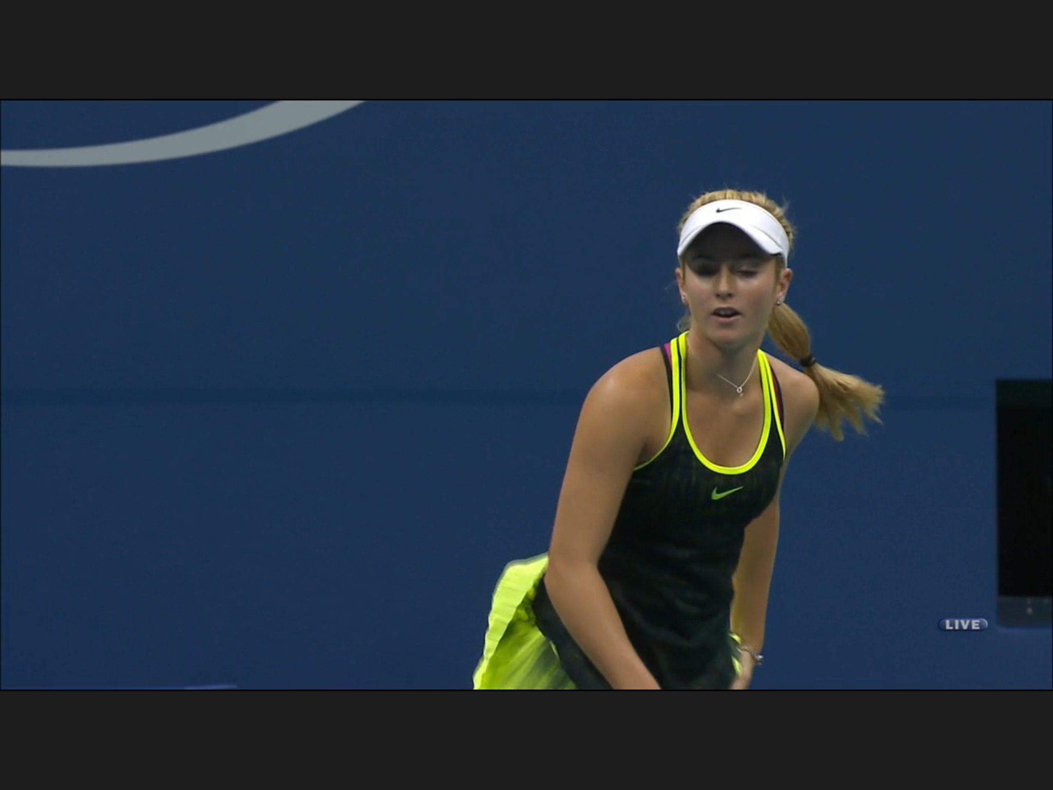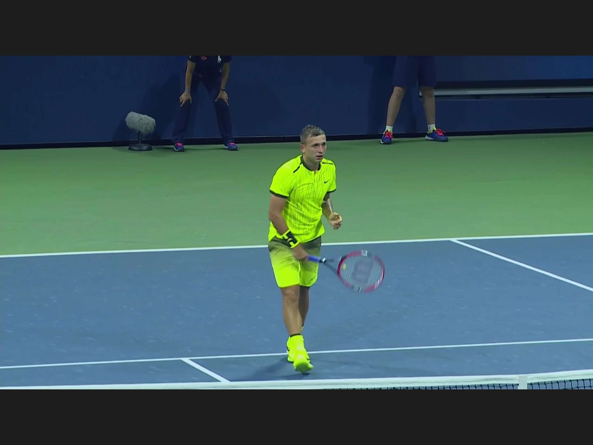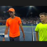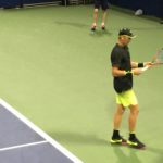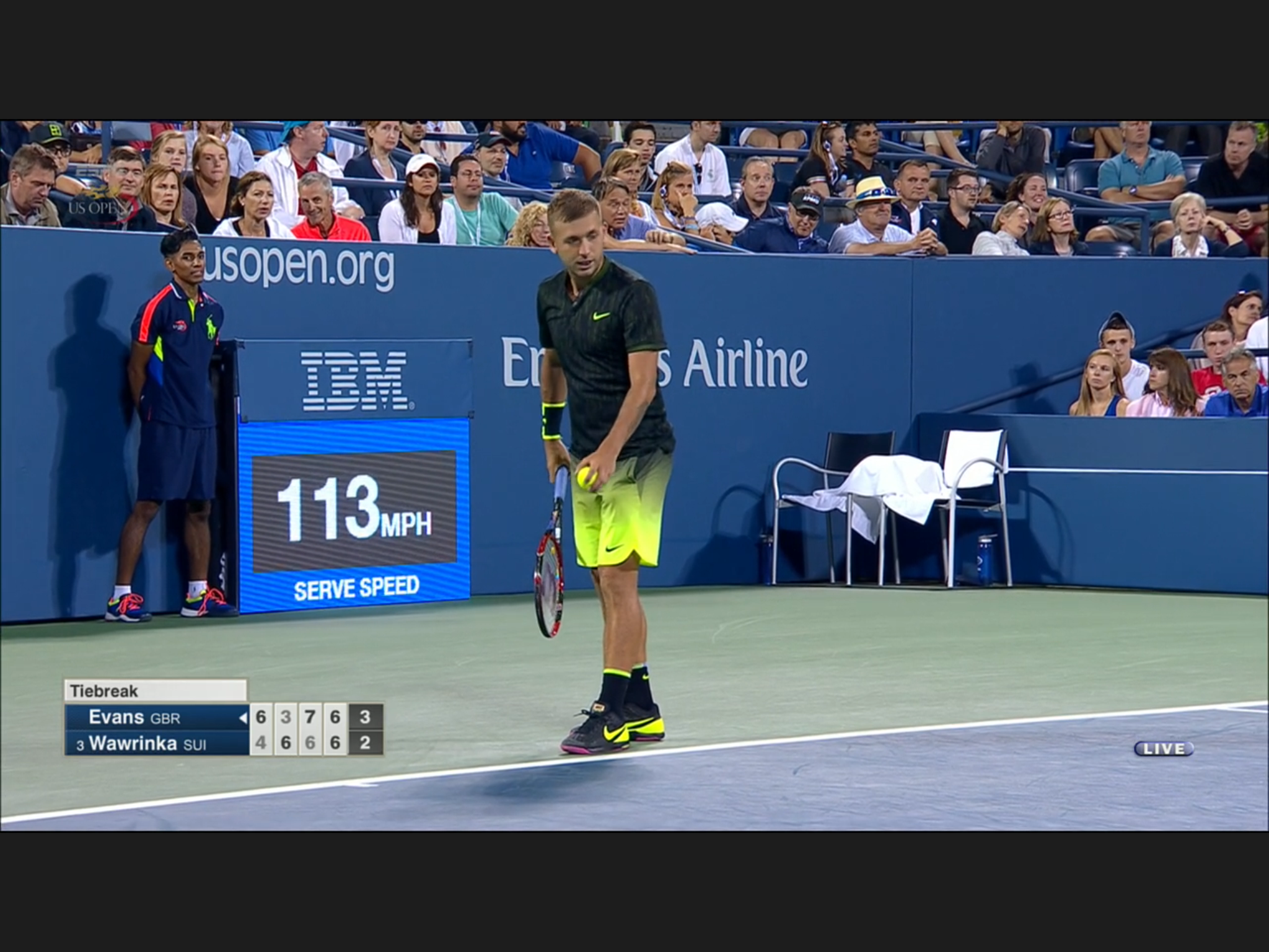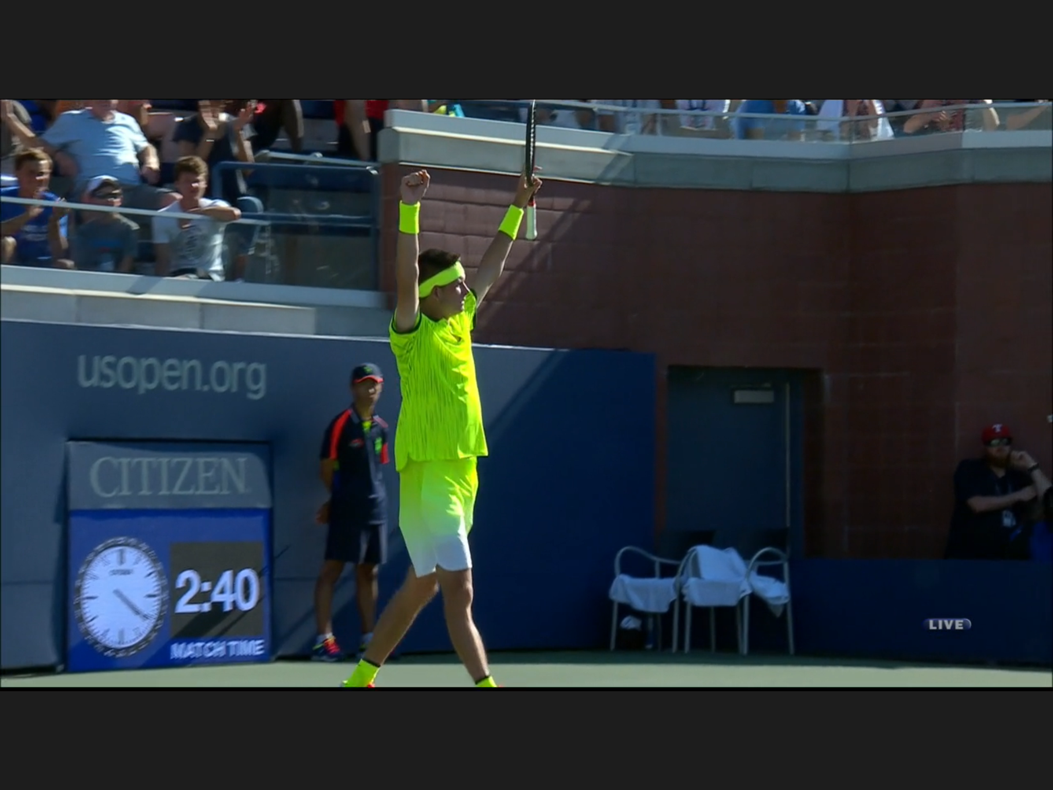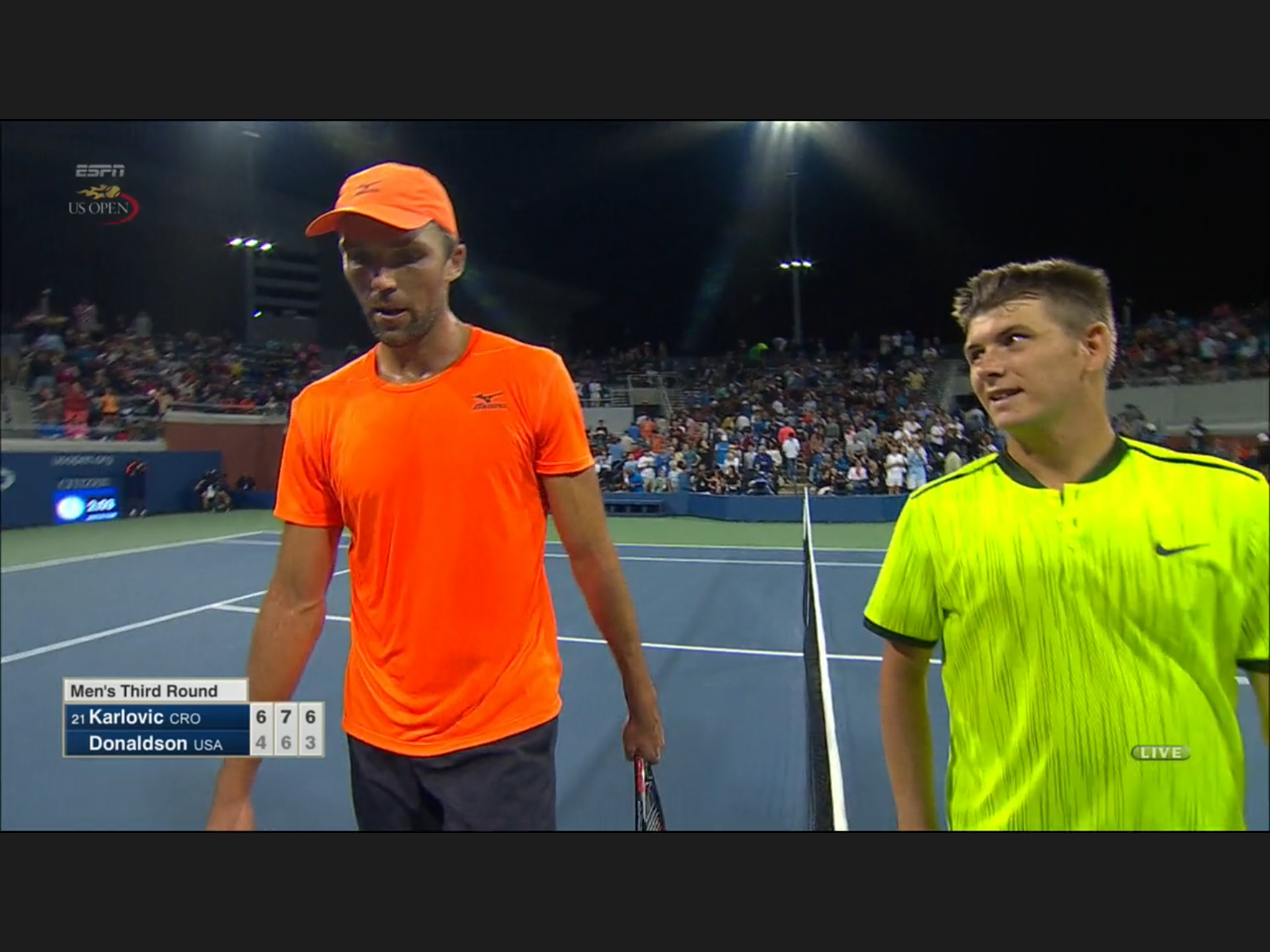 This has to be the most uniformed Open so far: every one is wearing the same neon/florescence color of yellow, men and women. At some singles matches the two players wearing identical outfit. Zhang Shuai is very tanned, still playing – she’s considering retirement before.