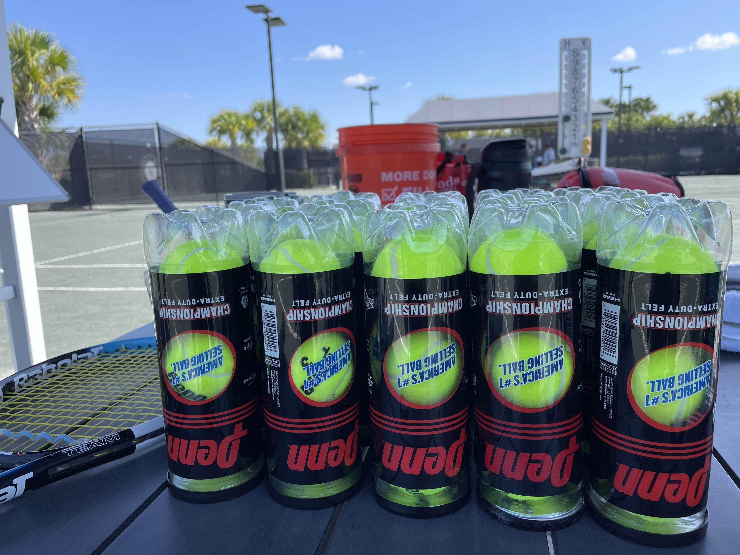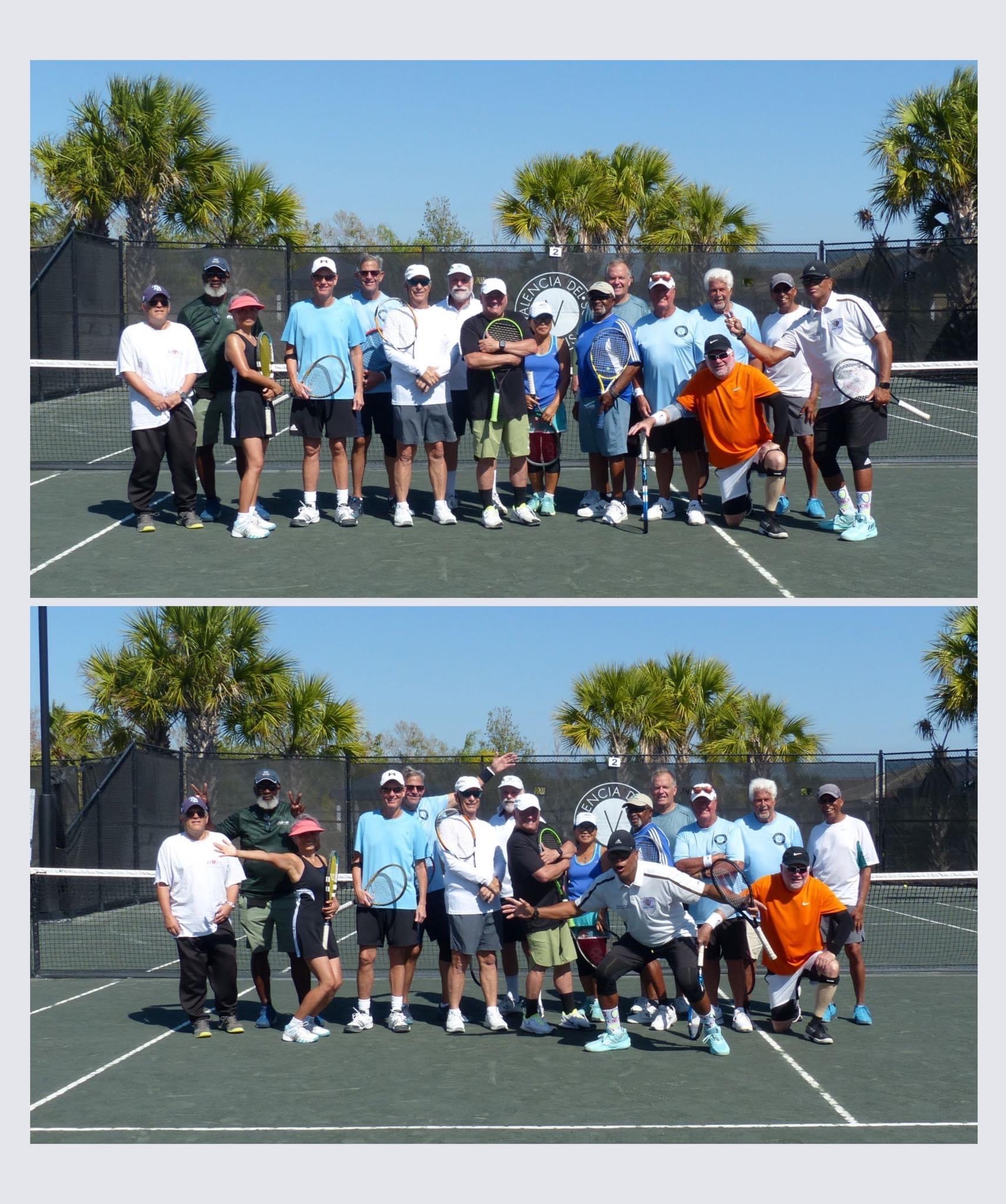 First match was against Craig/Dick. As Craig first serve to me went long, a ball rolled onto our court. I said “take two.”
