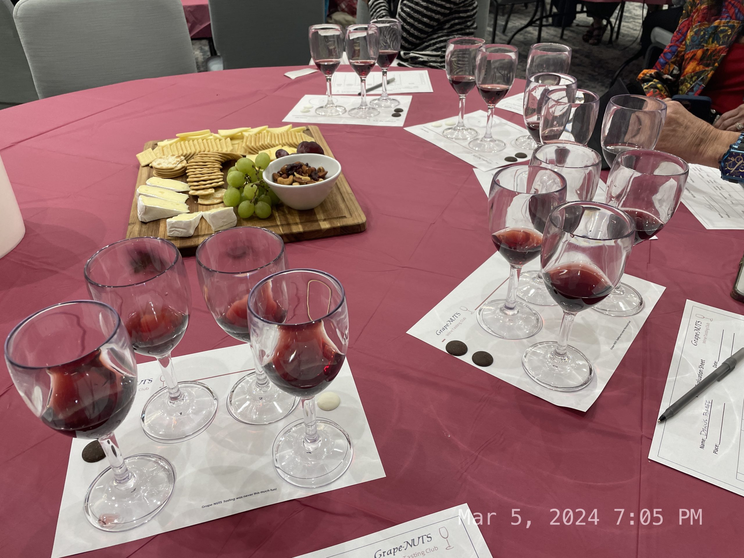 We got to the social hall at 6:58pm, and we were late for 7pm wine tasting. Gush -:) Is it the lure of the wine or the social norm that you get to an event EARLY?