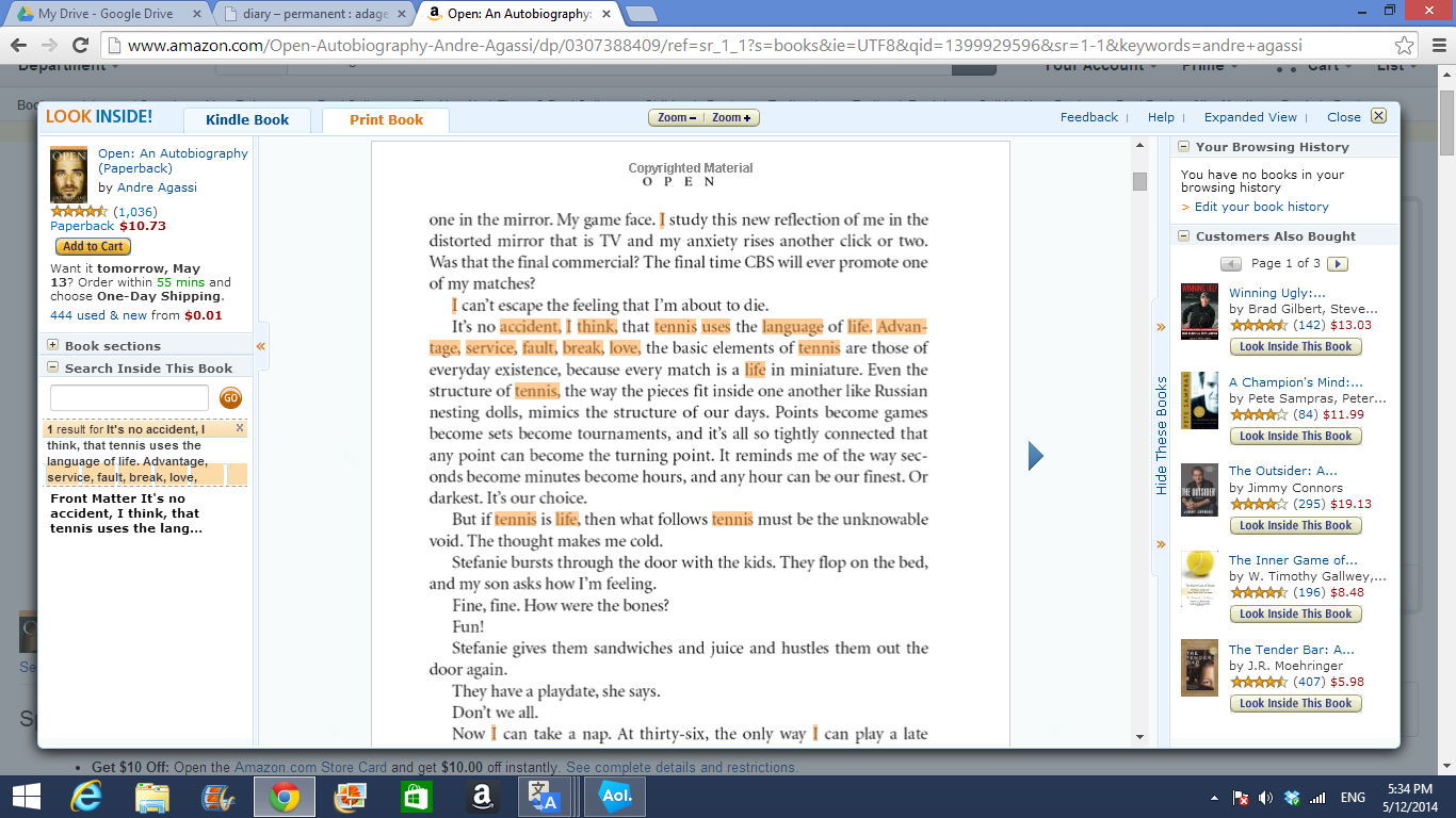 It’s no accident, I think that tennis uses the language of life. Advantage, service, fault, break, love, the basic elements of tennis are those of everyday existence, because every match is a life in miniature. Even the structure of tennis, the way the pieces fit inside one another like Russian nesting dolls, mimics the structure of our days. Points become games becomes sets become tournaments, and it’s all so tightly connected that any point can become the turning point. It reminds me of way seconds become minutes become hours, and any hour can be our finest. Or darkest. It’s our choice.