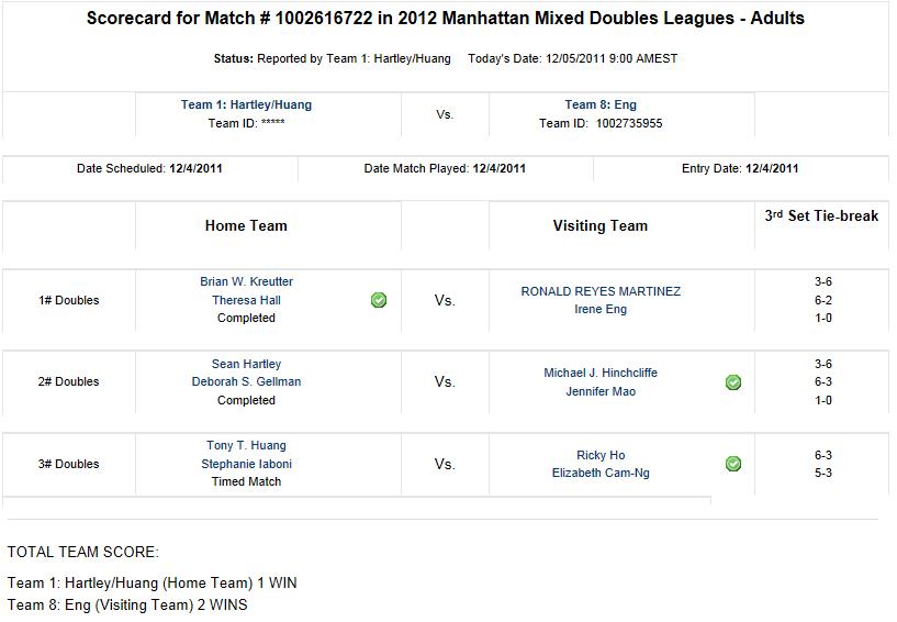 Back to our 3rd match at Roosevelt Island. The opposing captain dressed like a Japanese cartoon super hero (my kids enjoyed reading them and I have huge amount of it at home..), white outfit with a read head band holding his glossy spiky hair. Really neat. He handed me a neatly printed sheet .. I only have a hand written one to exchange.